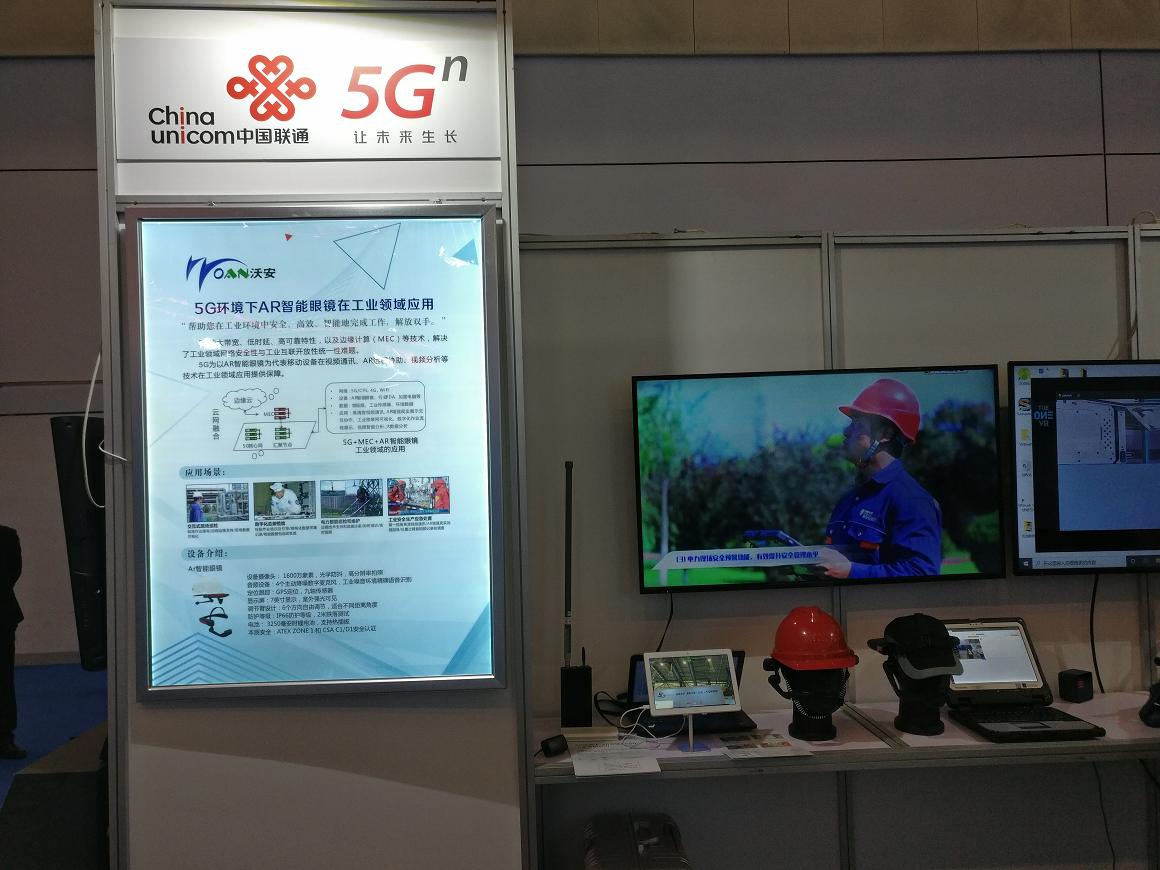 同中國聯(lián)通合作的沃安科技AR智能眼鏡工業(yè)互聯(lián)網(wǎng)應(yīng)用展臺吸引了大批的工業(yè)企業(yè)和政府的觀眾探討參觀。