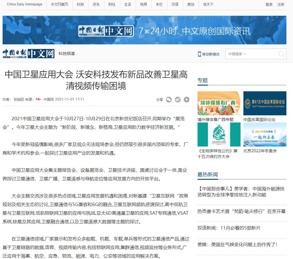 沃安科技參展2021中國衛(wèi)星應(yīng)用大會,發(fā)布新方案改善衛(wèi)星高清視頻傳輸困境。