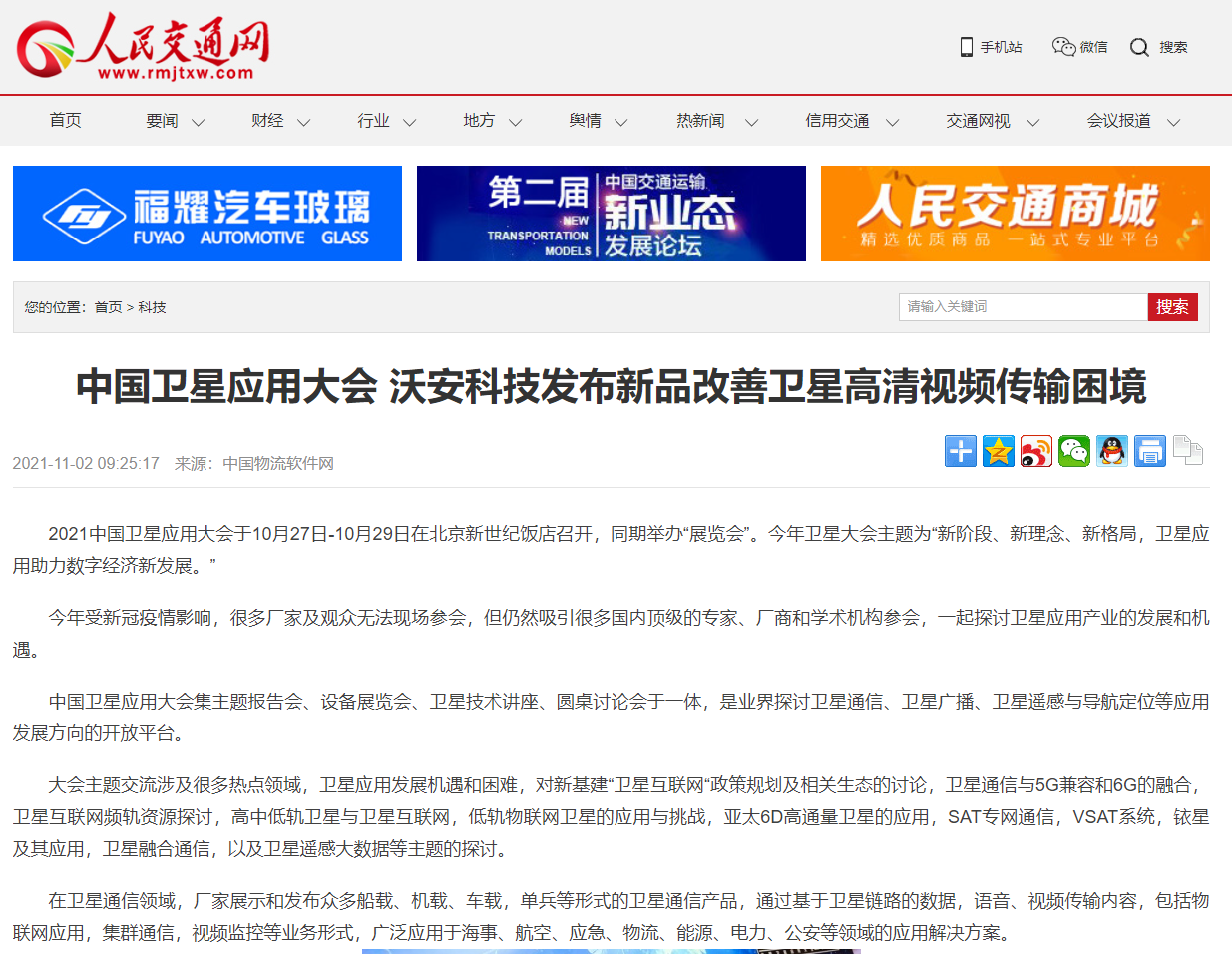 新華網(wǎng),騰訊網(wǎng),中國日報網(wǎng),中國經(jīng)濟(jì)網(wǎng),鳳凰網(wǎng),網(wǎng)易網(wǎng),搜狐網(wǎng),人民交通網(wǎng)等媒體刊登轉(zhuǎn)發(fā)沃安科技發(fā)布的WLBHD V2產(chǎn)品方案,并介紹新品對衛(wèi)星高清視頻傳輸困境的改善情況做介紹。