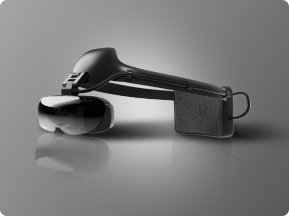 雙目光波導(dǎo)顯示、一體頭環(huán)式結(jié)構(gòu),長(zhǎng)出瞳距,適配眼鏡