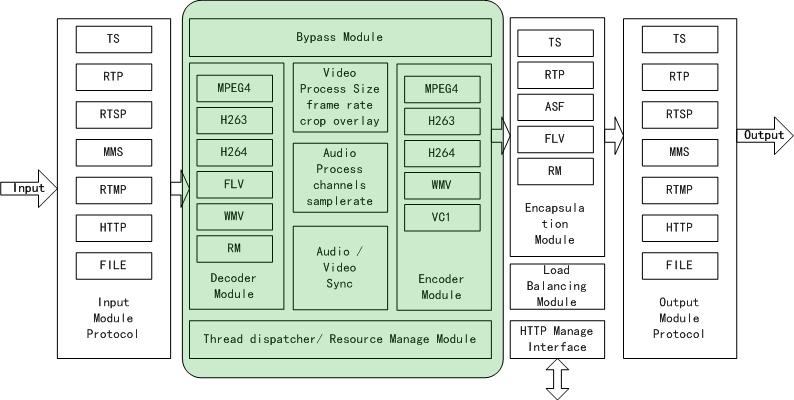 轉(zhuǎn)碼系統(tǒng)支持多種視頻流接入,進(jìn)行后續(xù)的音視頻轉(zhuǎn)碼。